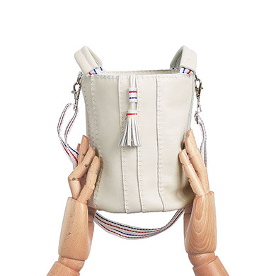 DETECHABLE LONG NYLON SHOULDER BAND WHITH BLUE AND RED STRIPES.