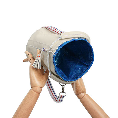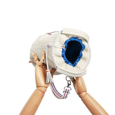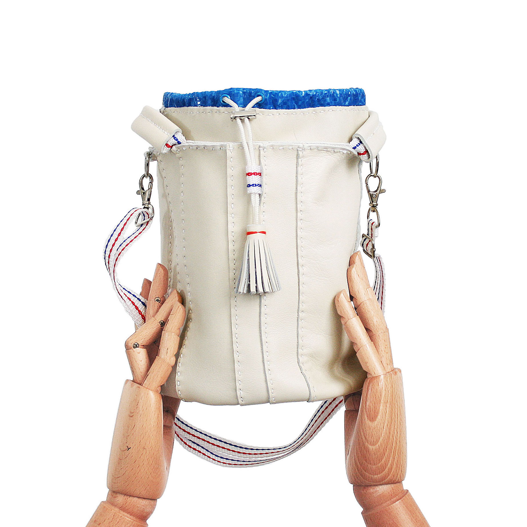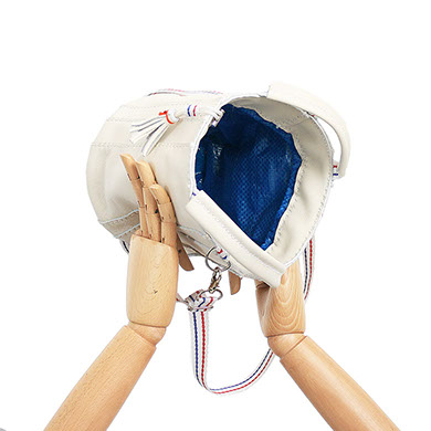 DETECHABLE LONG NYLON SHOULDER BAND WHITH BLUE AND RED STRIPES.