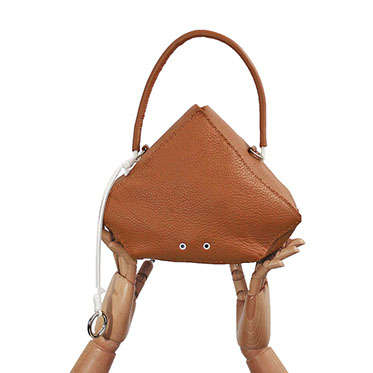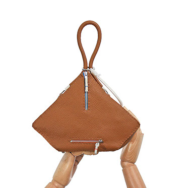PENTAGON BAG IN ALMOND CALF LEATHER.