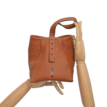 TRAPEZIUM BAG IN BROWN CALF LEATHER.